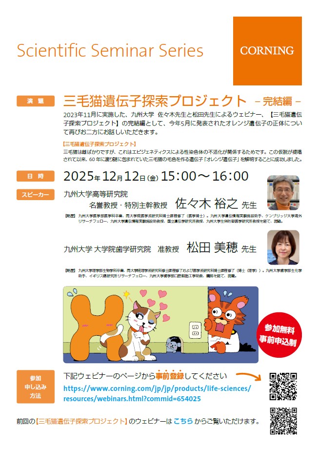 12月12日 三毛猫遺伝子探索プロジェクト – 完結編 –コーニングインターナショナル