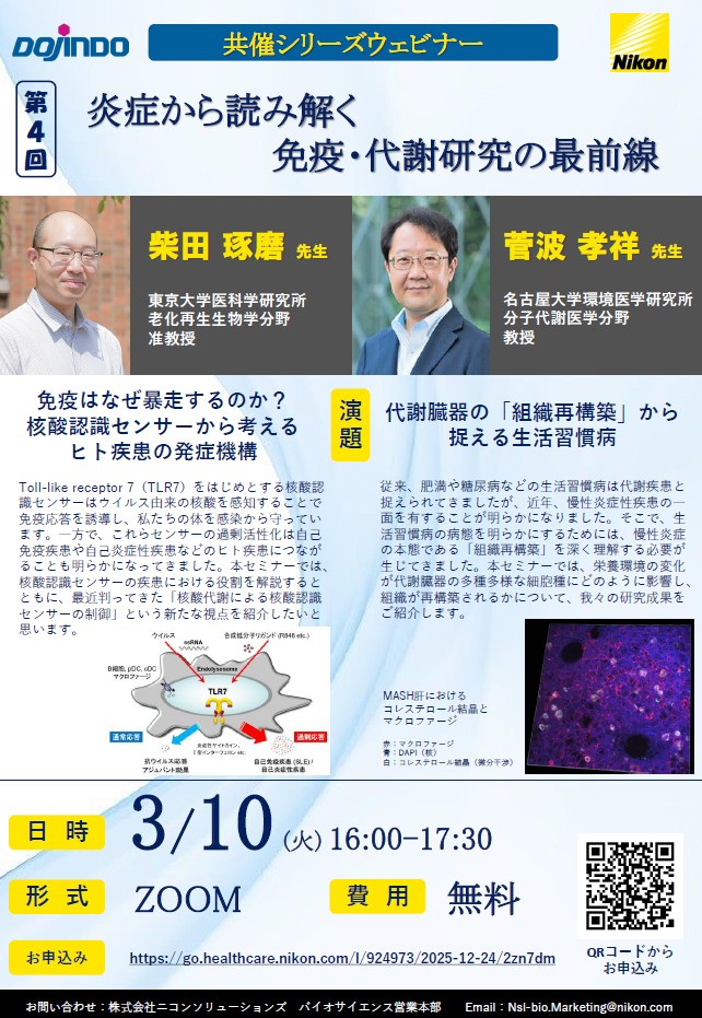 3月10日 炎症から読み解く免疫・代謝研究の最前線ニコン X 同仁化学研究所