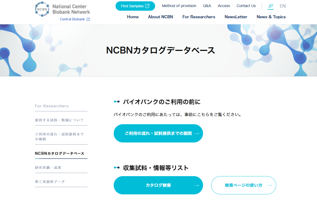 実際にバイオバンクを利用するにはどのようにしたらよいでしょうか?NCBNやAMEDの研究プロジェクトではサンプル検索をするためのプラットフォームを提供しており、それらを活用することで簡単に国内のバイオバンク試料を確認できます。