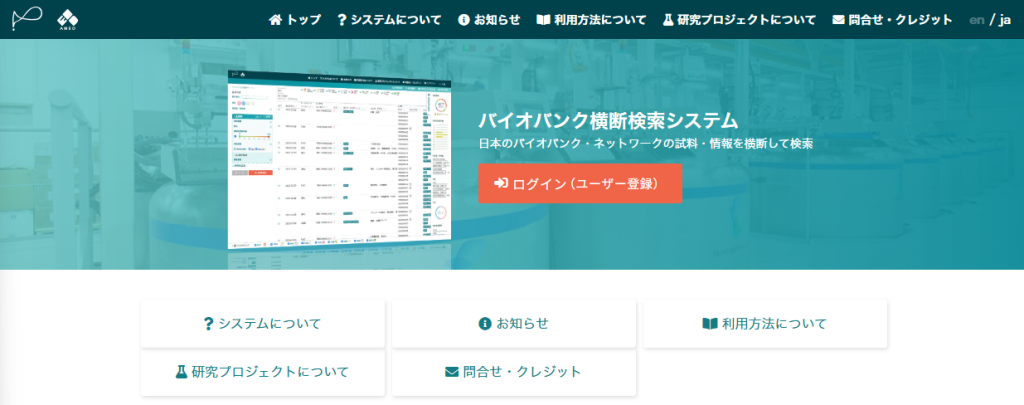 ・NCBNを含む、国内の主要なバイオバンク(東北メディカル・メガバンク(ToMMo)など)の情報をまとめて検索できる、さらに大規模なプラットフォーム。