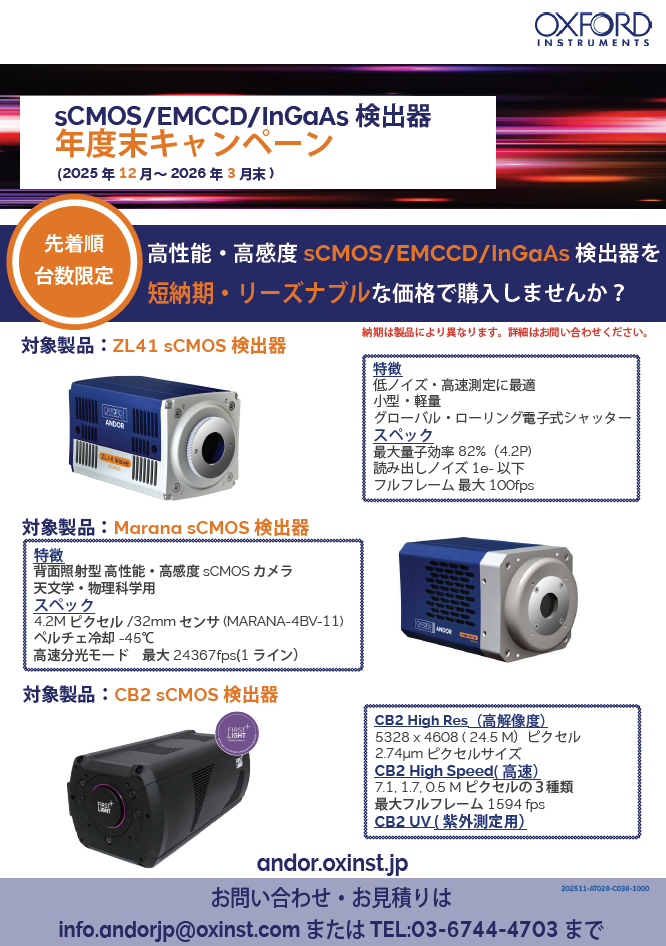 【台数限定】sCMOS/EMCCD/InGaAs 検出器 年度末キャンペーン