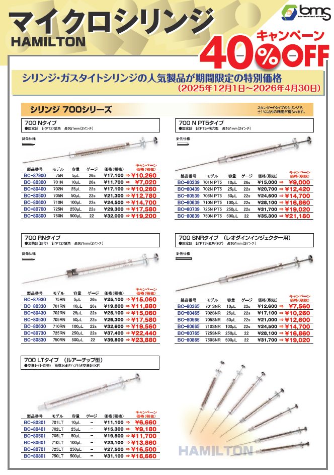 HAMILTON マイクロシリンジ キャンペーン