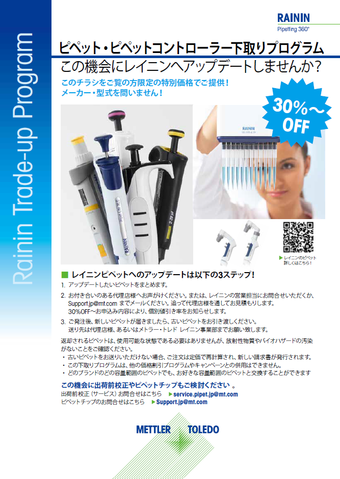 LTS手動シングルピペット(メトラー・トレド) LTS手動マルチチャンネルピペット(メトラー・トレド) レイニンSPピペットコントローラー(メトラー・トレド) |