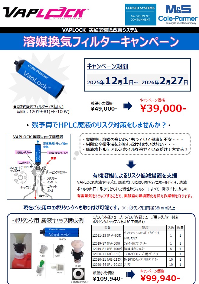 VAPLOCK 溶媒換気フィルターキャンペーン