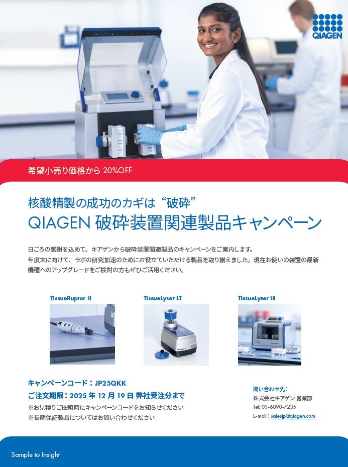 TissueLyser LT(キアゲン) TissueRuptor II(キアゲン) 詳細URLを御覧ください |