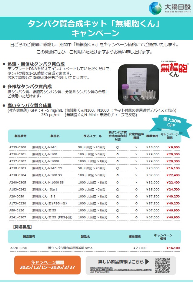 【大陽日酸】 タンパク質合成キット 「無細胞くん」 キャンペーン