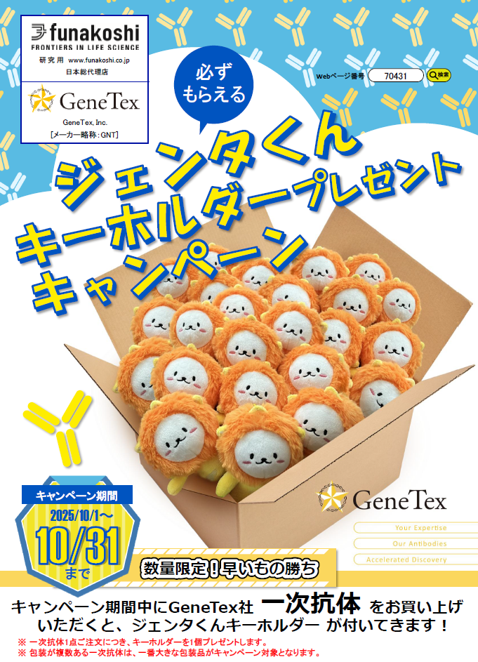 GeneTex社 早いもの勝ち!ジェンタくんキーホルダープレゼントキャンペーン