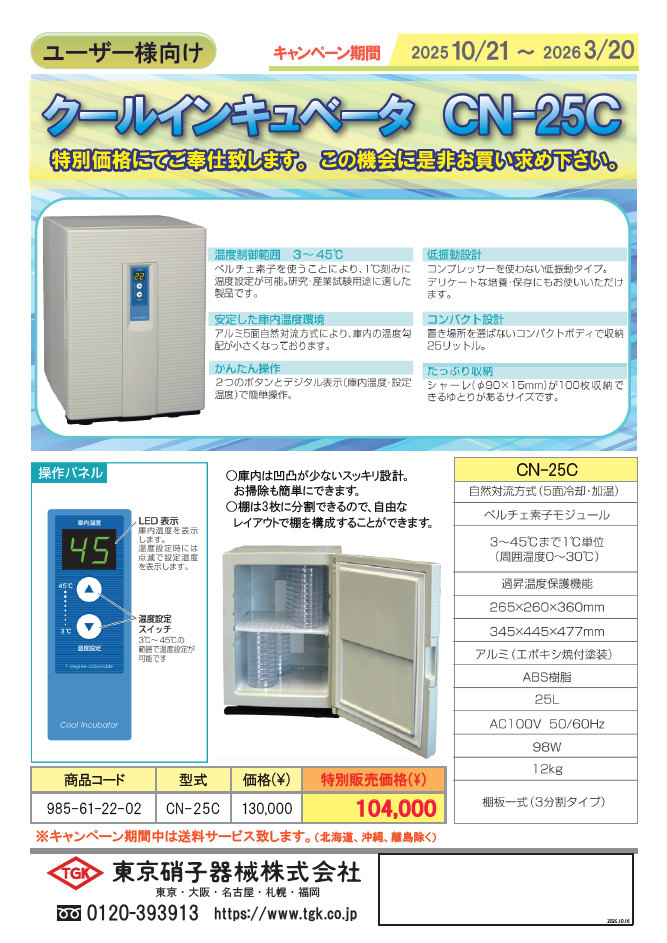 | 取り扱いメーカー | 東京硝子器械 |