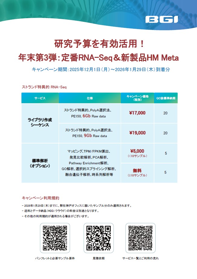 | 対象製品 | RNA-Seqサービス(BGI JAPAN) |