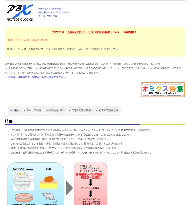 プロテオーム解析受託サービス 特別価格キャンペーン