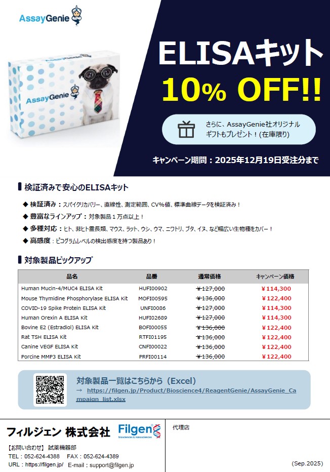 AssayGenie社 ELISAキット 10%OFF キャンペーン!