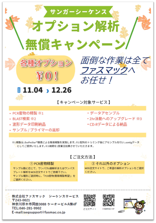【ファスマック】 サンガーシーケンス オプション解析無償キャンペーン