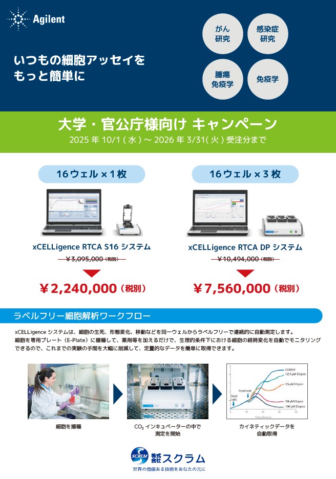 アジレント社 xCELLigence-S16・DP 大学官公庁キャンペーン