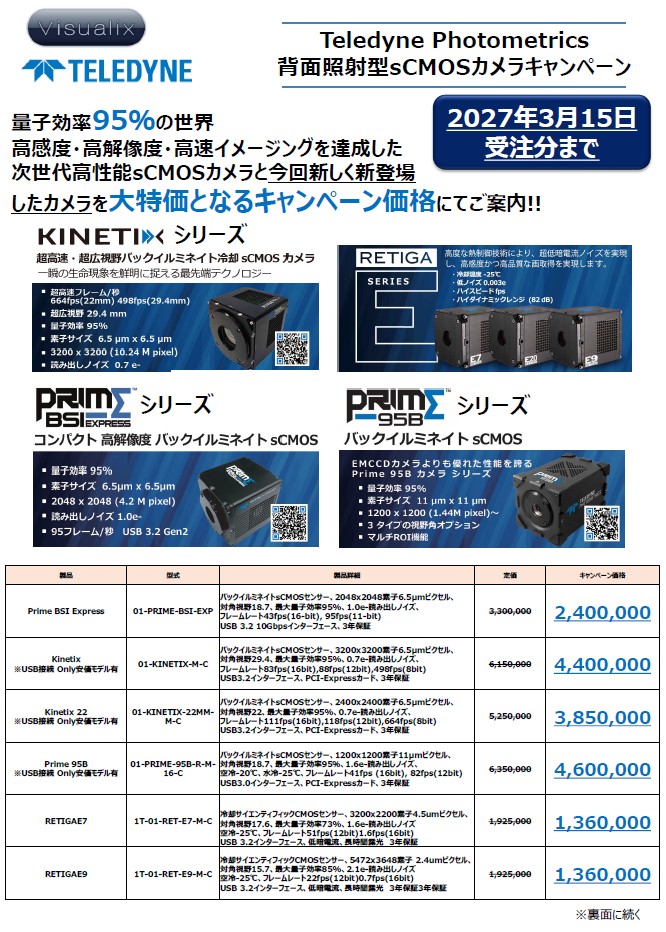 | 対象製品 | Teledyne Photometrics カメラ (Visualix) |
