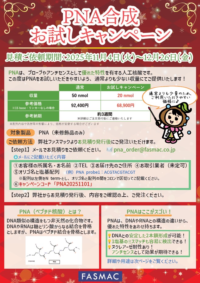 【ファスマック】 PNA合成お試しキャンペーン!2025