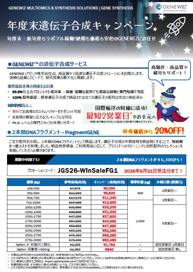 年度末遺伝子合成キャンペーン