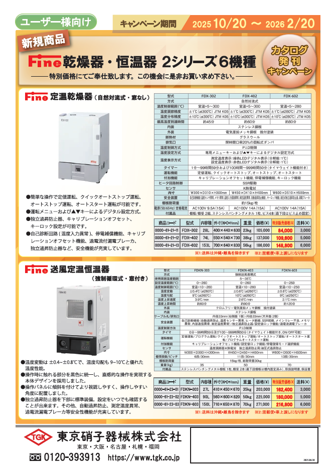Fine乾燥器・恒温器 カタログ発刊キャンペーン