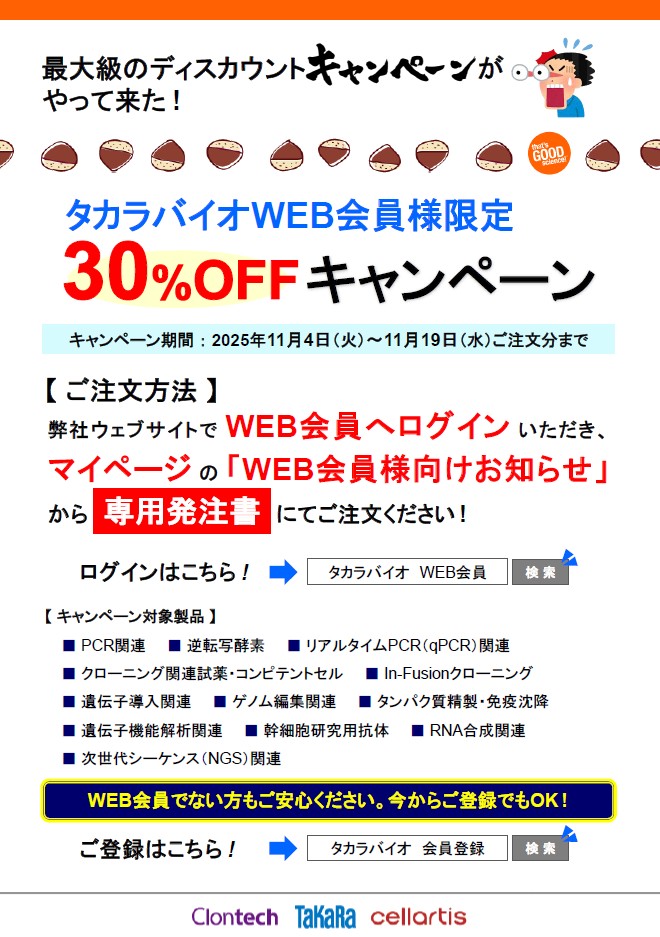 おすすめタカラバイオWEB会員様限定 30%OFFキャンペーン